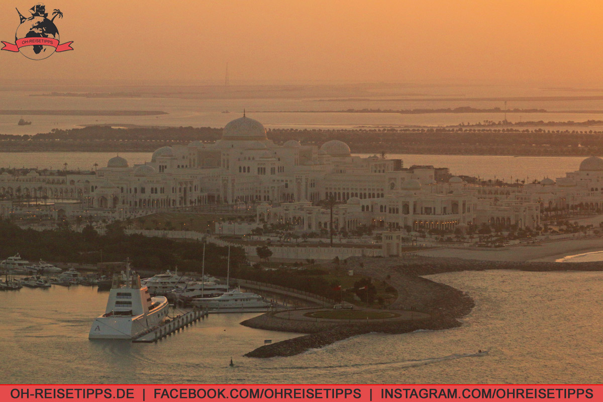 abu-dhabi-praesidentenpalast Ausblick vom Colombia Coffee House in der Marina Mall auf den Präsidentenpalast in Abu Dhabi. Foto: Oliver Heider Ausblick vom Colombia Coffee House in der Marina Mall auf den Präsidentenpalast in Abu Dhabi. Foto: Oliver Heider