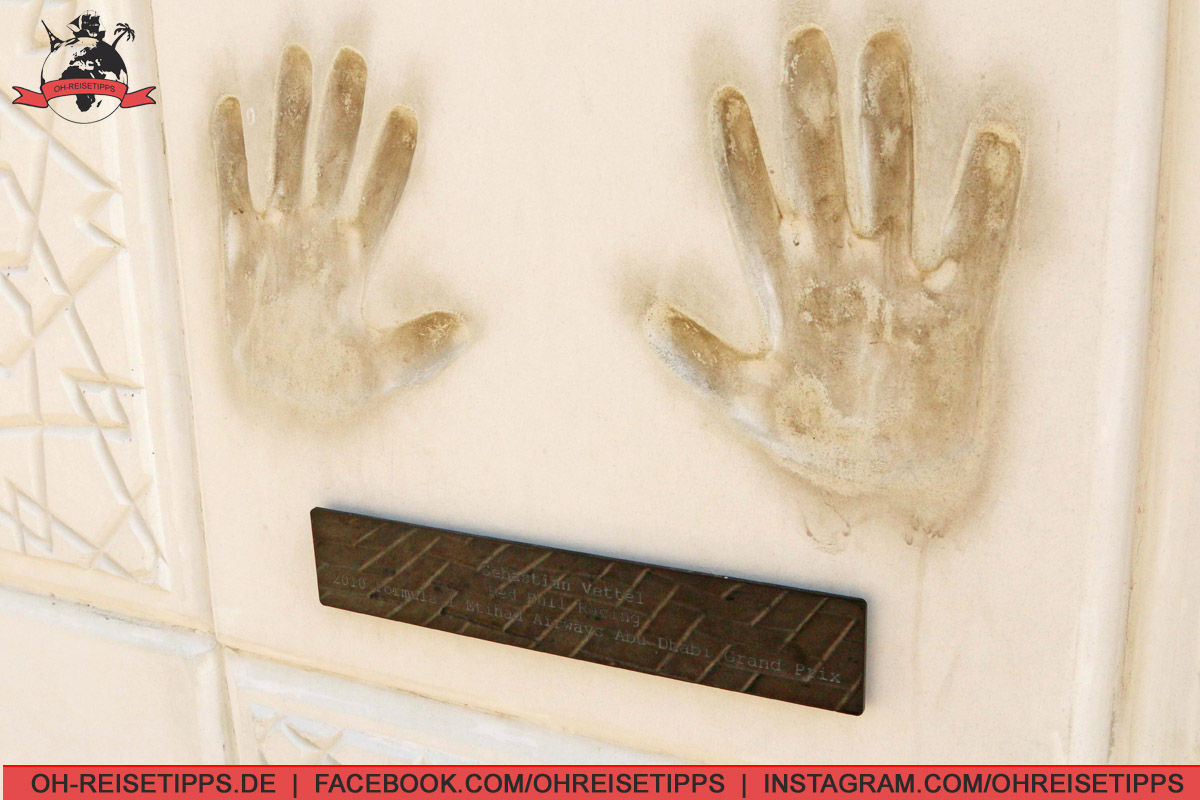 abu-dhabi-yas-marina-circuit-5 Handabdruck von Sebastian Vettel vor dem Eingang zum "Yas Marina Circuit" in Abu Dhabi. Foto: Oliver Heider Handabdruck von Sebastian Vettel vor dem Eingang zum "Yas Marina Circuit" in Abu Dhabi. Foto: Oliver Heider